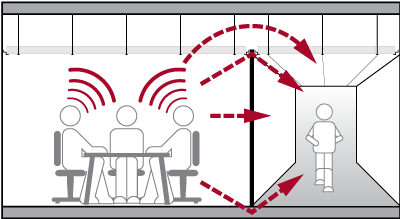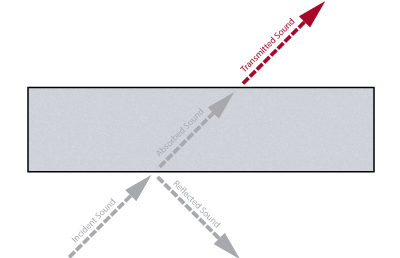 L'absorption acoustique est calculée à l'aide du coefficient d'absorption du son alpha, qui a une valeur entre 0 et 1,00. 0 représente aucune absorption (réflexion totale), et 1 signifie une absorption totale sur le bruit incident Ce coefficient, qui détermine les indicateurs d'absorption acoustique couramment utilisés, est expliqué ci-dessous.